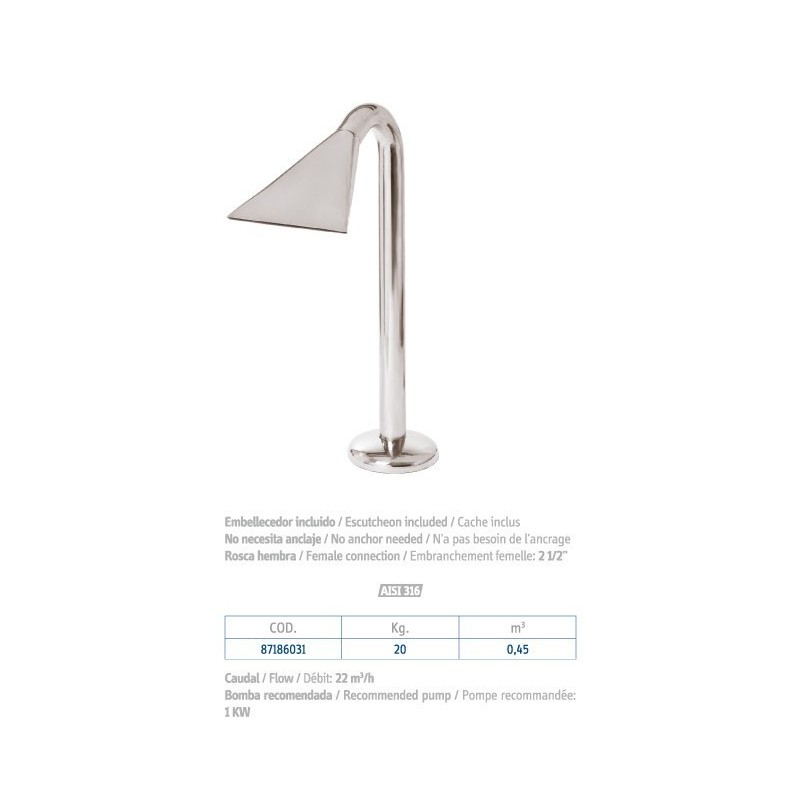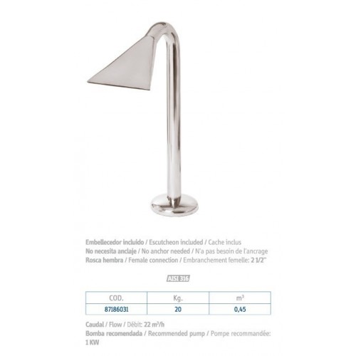 Cañón fabricado en acero inoxidable AISI 316. Con dos tipos de boquilla, circular y plana. NO NECESITA ANCLAJE.