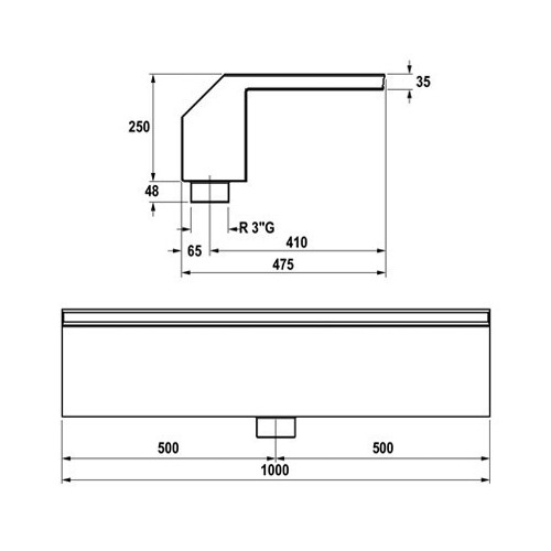 Cascada decorativa para empotrar Maui, fabricada en acero inoxidable AISI 316 y en tres medidas disponibles: 300 mm. , 500 mm. , y 1.000 mm.