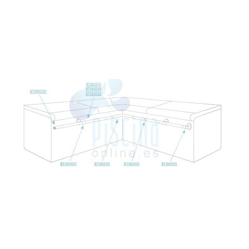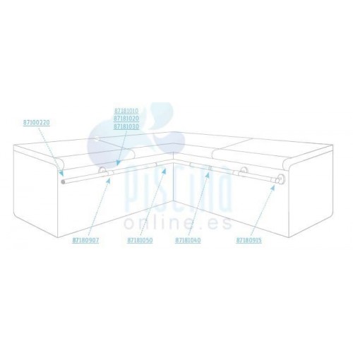 Tubo de acero inoxidable presentado en cajas de 4 unidades. Conjuntamente con los accesorios, podemos rodear nuestra piscina con un pasamanos de gran calidad.