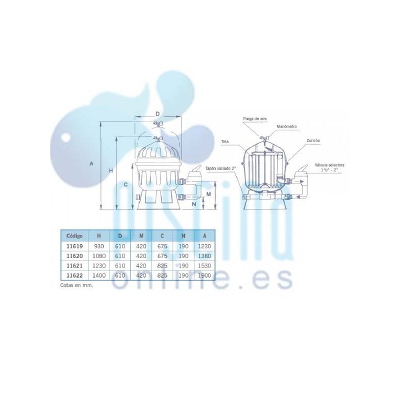 Filtro Clarity, Filtro Clarity: Ø 600 mm - salidas 2" - 21.800 l/h - Mod. DE-48 11621