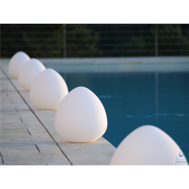 Lámpara LED inalámbrica recargable para interior y exterior incluso para poner sobre la superficie del agua. Dispone de un mando a distancia por infrarrojos, dando la opción de cambiar el color de la lámpara.