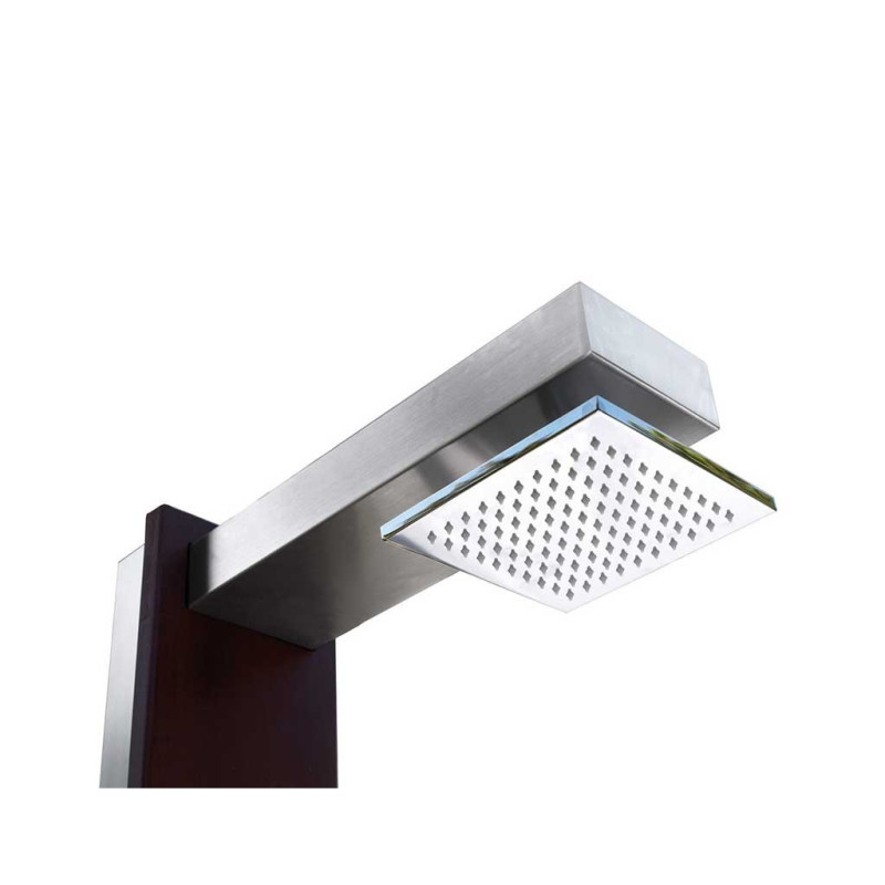 Ducha solar fabricada en madera tropical y acero inoxidable AISI-316 satinado.