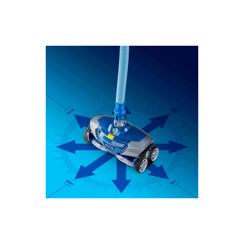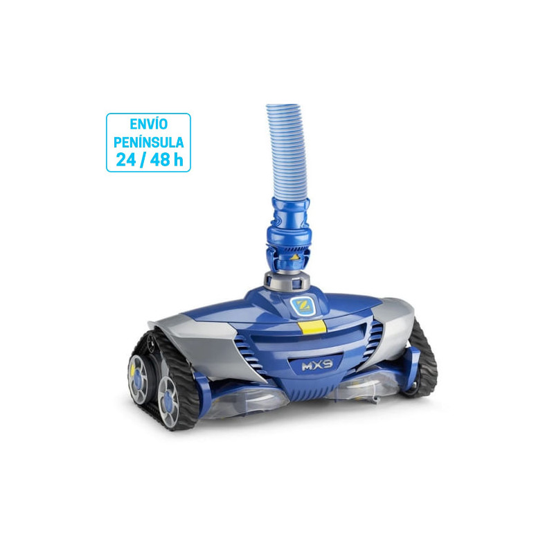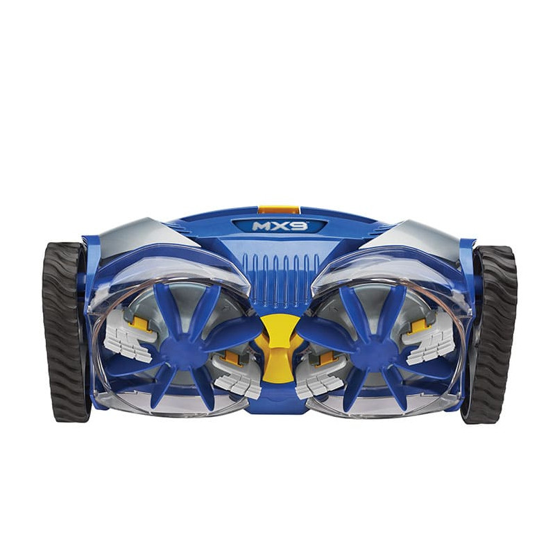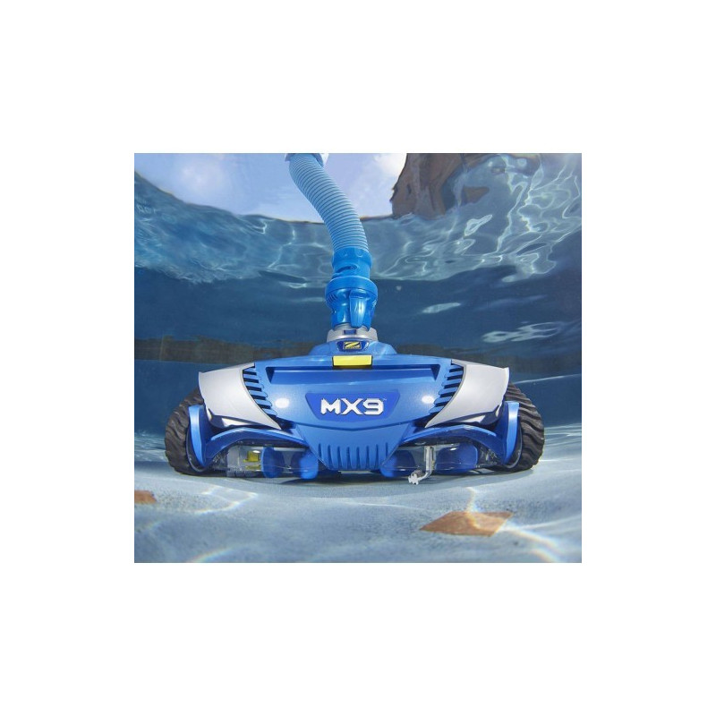 El MX9 es la versión mejorada del MX8 limpiafondos hidráulico para piscinas de Zodiac. Equipado con una potente turbina de aspiración y con dos hélices con cepillos que recogen e impulsan la suciedad hacia la boca del robot.