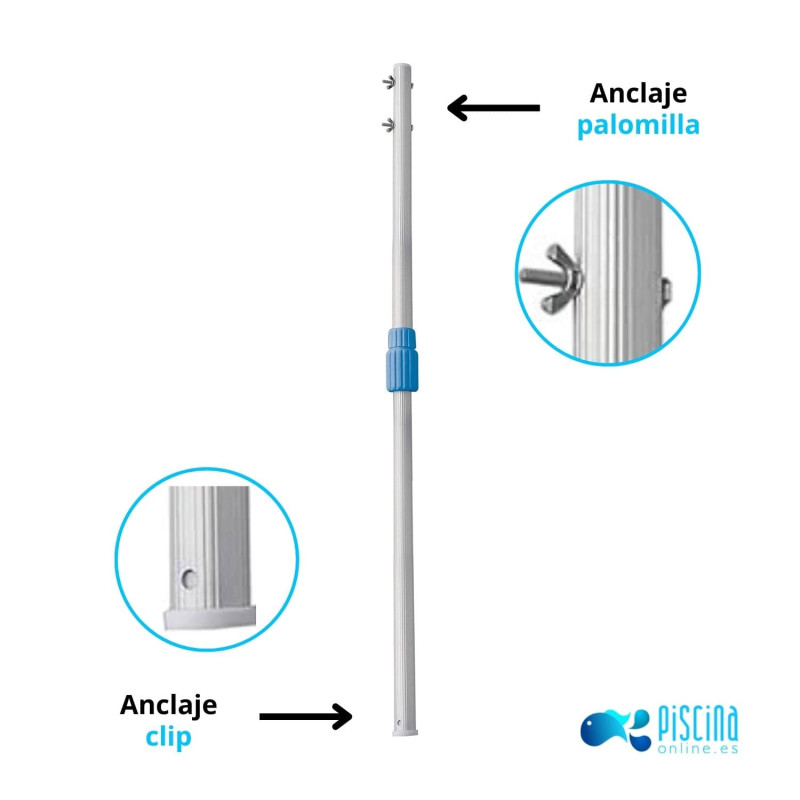 + Limpiafondos manual para la limpieza del fondo de la piscina.