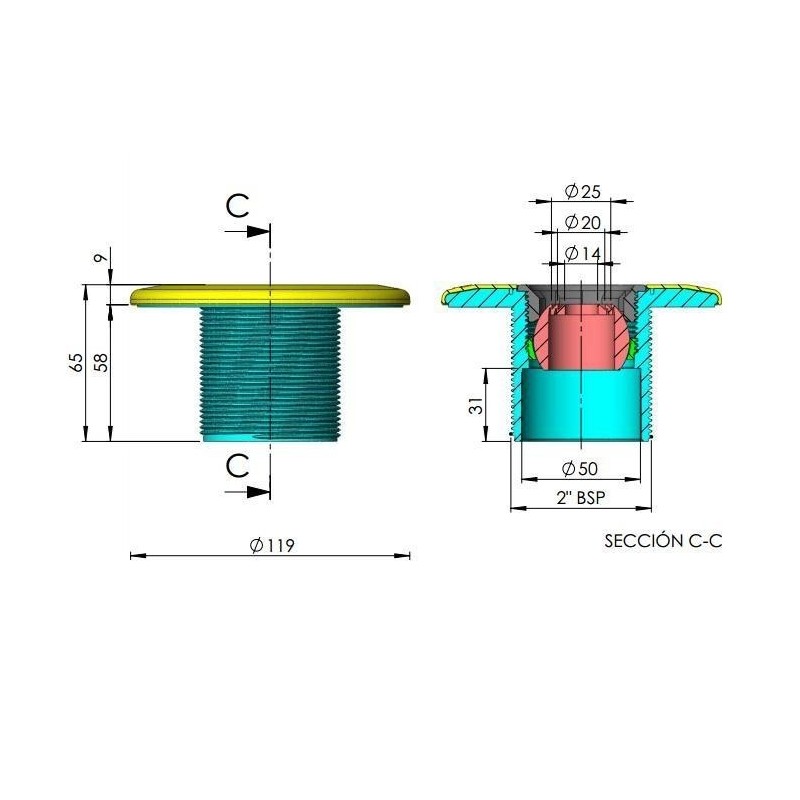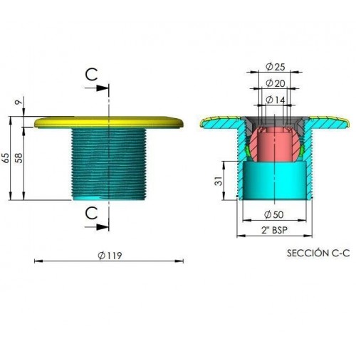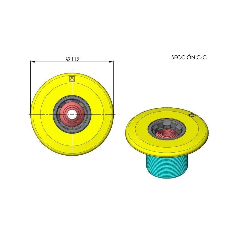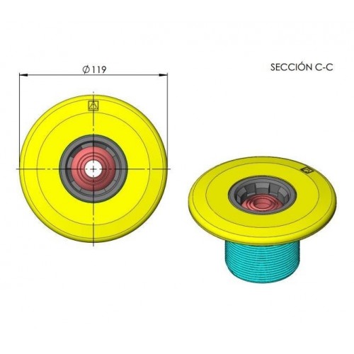 Boquilla de impulsión con sistema Multiflow que permite seleccionar una serie de diámetros en su instalación gracias a su diseño. Para piscinas de hormigón.