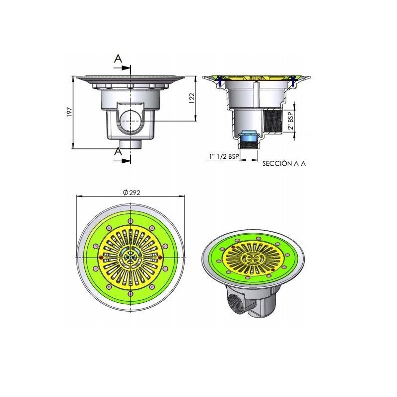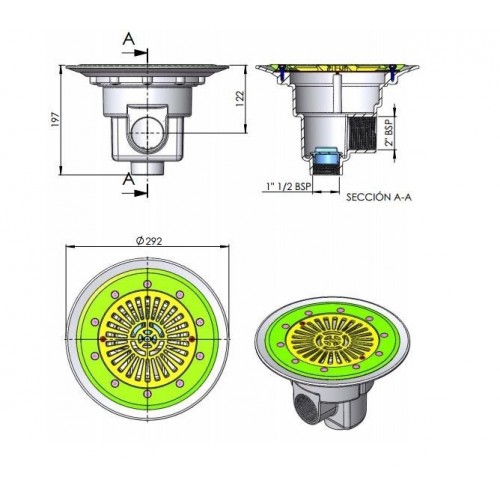 Sumidero modelo PARKER de 290 mm de diámetro especial para piscinas Liner de la marca AstralPool. Fabricado en ABS color blanco con tornillería en acero inoxidable y juntas adhesivas de material sintético. Su montaje a ras de fondo permite un vaciado total.