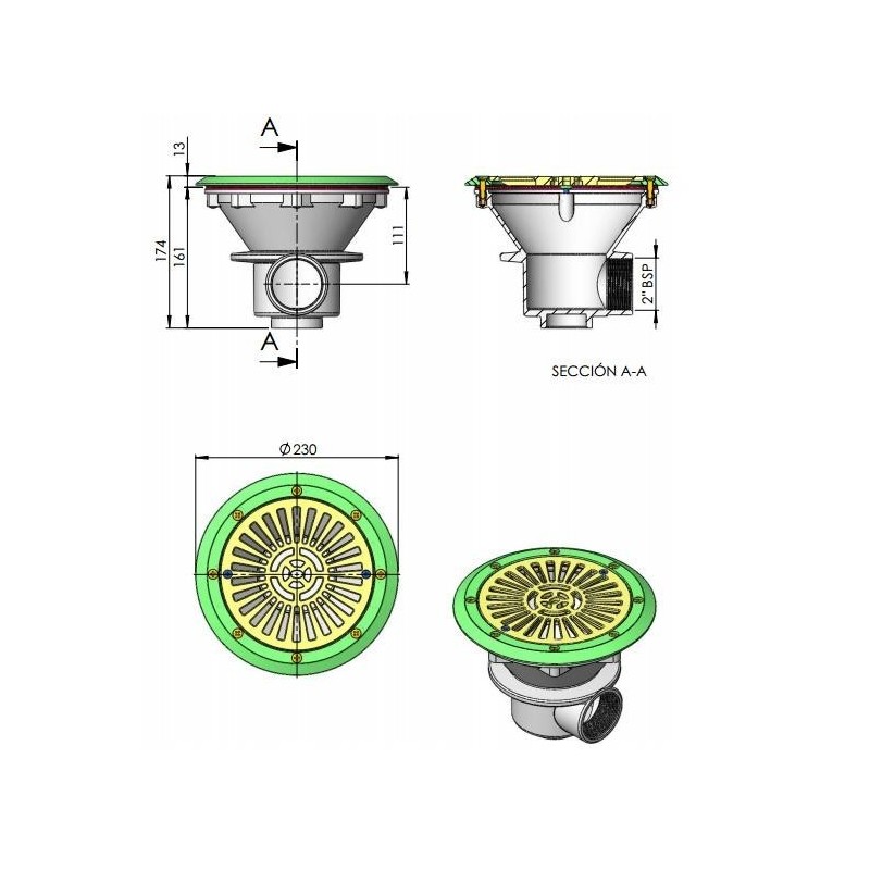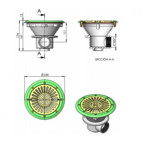Sumidero Ø 210 mm con rejilla ABS piscina liner y prefabricada AstralPool