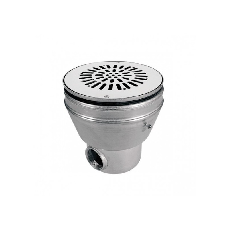 Sumidero circular fabricado en acero inoxidable AISI-316 para piscinas con liner y prefabricada de la marca AstralPool con salida lateral de 2". Lleva fijación de la reja mediante tornillos, va equipado con juntas, brida y tornillos de fijación.