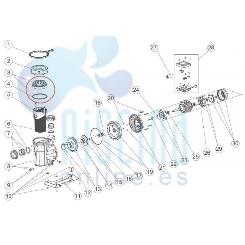 Tapa y Junta tórica del prefiltro de la bomba Victoria Plus de Astralpool.