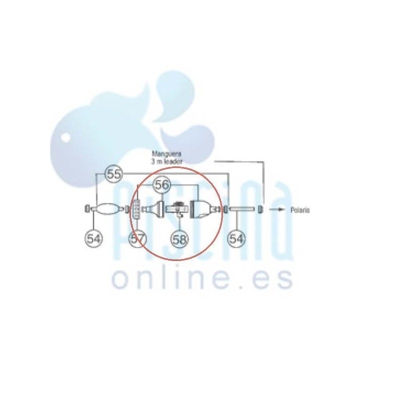 G52 Kit Válvula de retroceso para Polaris 280 que comprende la carcasa (G-54), el mecanismo interno (G-53) y la tuerca de la carcasa (G-57). Todos estos elementos también se sirven por separado.
