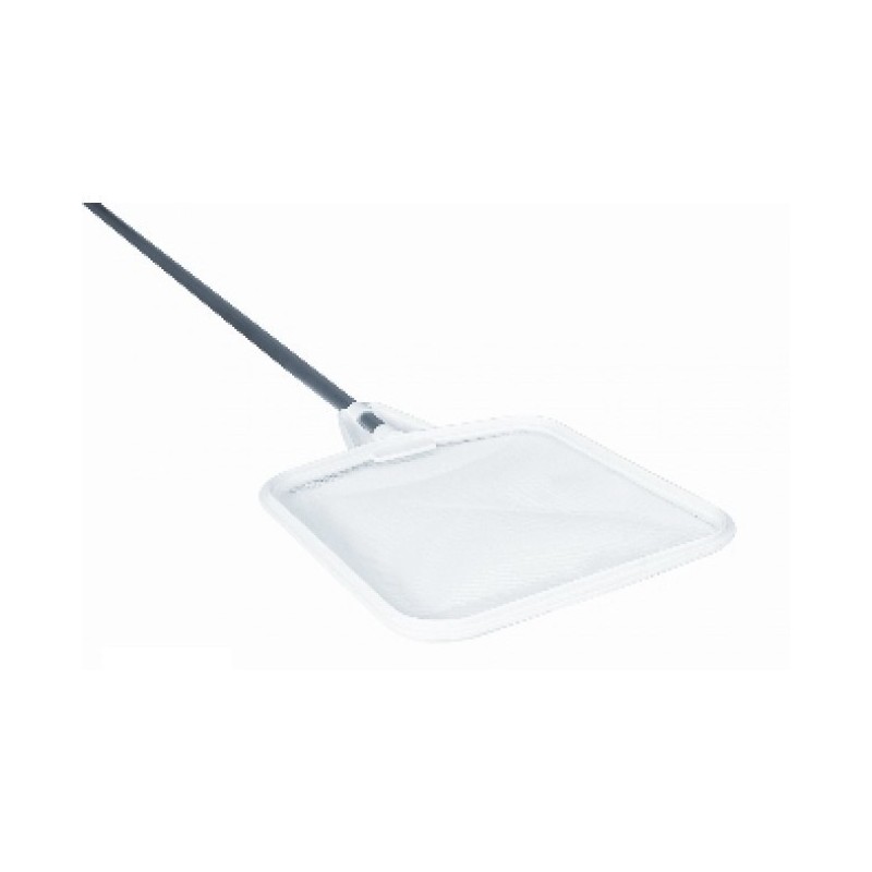 Soporte en polipropileno color blanco y tela en poliéster color blanco. Mango de aluminio fijado a presión.