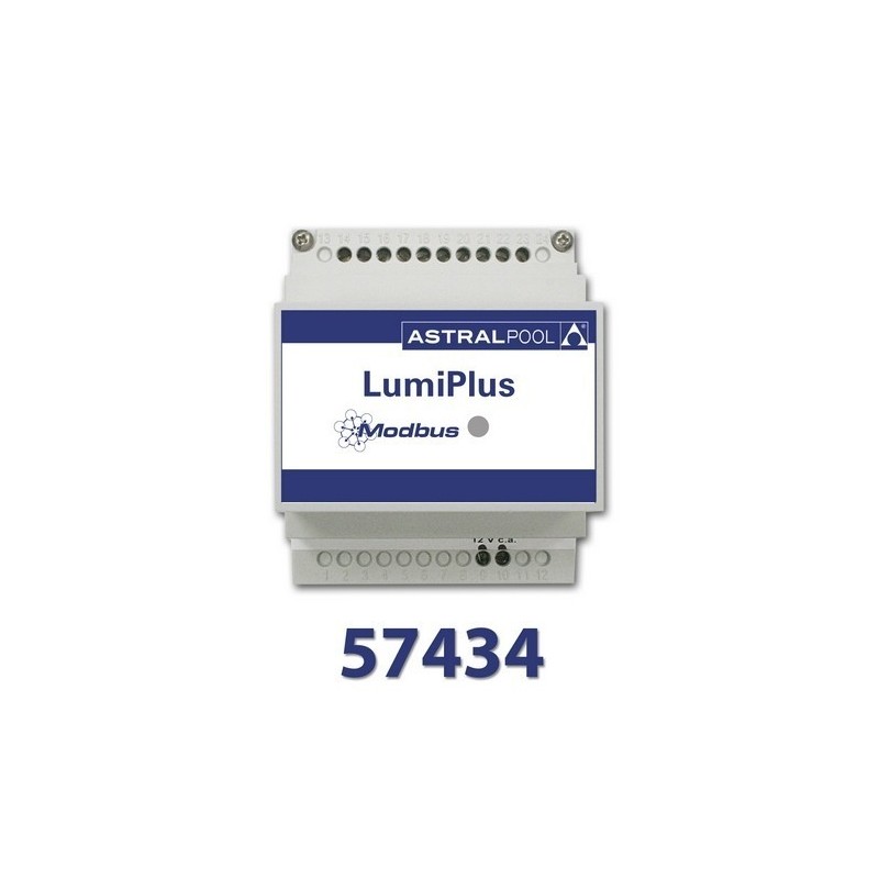 Permite controlar los proyectores LumiPlus mediante protocolo ModBUS. Se debe disponer de un modulador 27818 para su correcta instalación y funcionamiento.