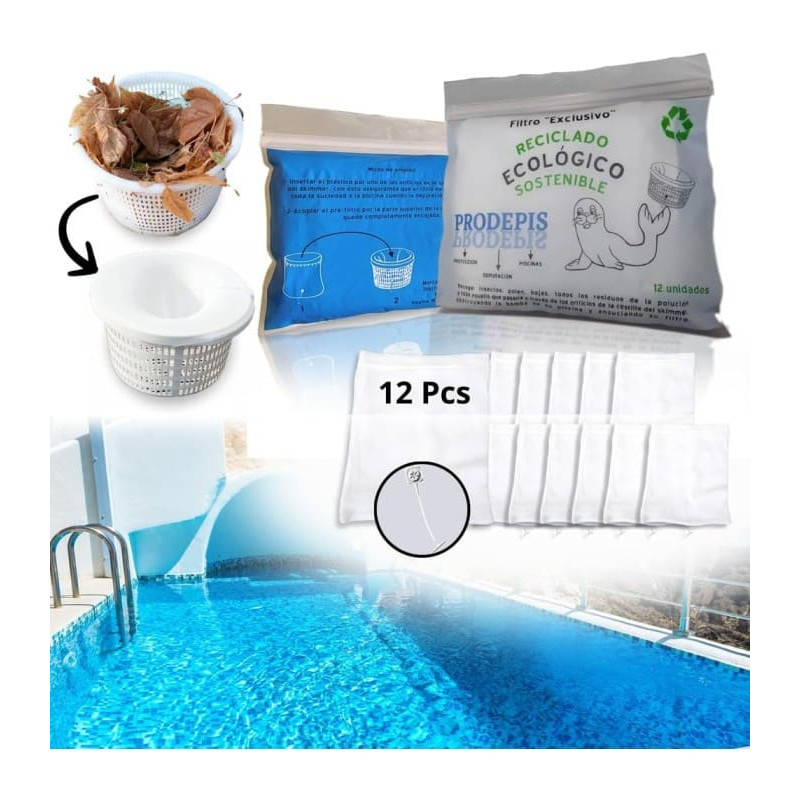 Si usas pastillas de cloro o floculantes en cartucho, no te preocupes, el Filtro para skimmer ecológico no interfiere con su funcionamiento. Para mantener su efectividad, se recomienda reemplazar el prefiltro de tela semanalmente, asegurando así que mantenga su capacidad máxima de absorción de micropartículas.