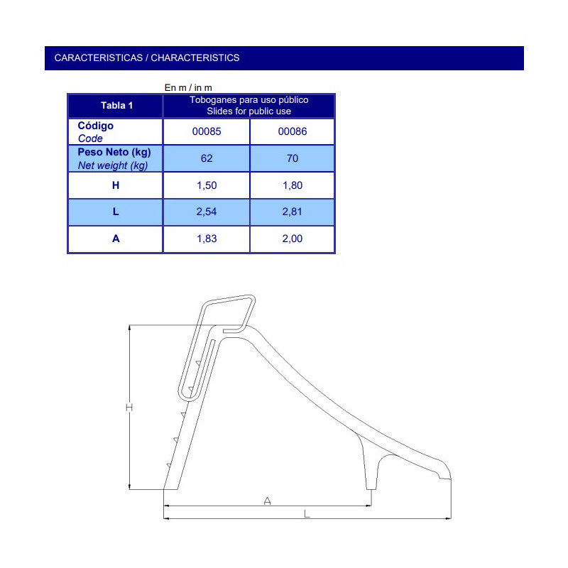 + Pista y escalera en poliéster y reforzado con fibra de vidrio.