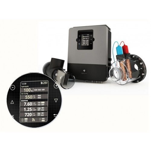 Si en este tratamiento incorporamos una pequeñísima cantidad de sal (entre 1 y 2gr sal por litro de agua) bien sea por falta de conductividad o por querer general un residual tangible, conseguiremos que el mismo sistema además genere un residual de cloro por electrolisis salina a baja concentración. Los productos se descomponen, actúan y se vuelven a regenerar. El desinfectante residual generado por la electrólisis no perjudica a los ojos, piel ni salud del bañista. Sin importarnos el hecho de quedarnos sin sal en el agua, puesto que el sistema seguiría desinfectando en modo HIDRÓLISIS El cloro generado destruye la materia orgánica y patógenos presentes en el agua, transformándose de nuevo en cloruro sódico (sal común).